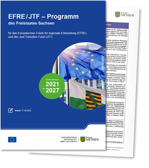 Das EFRE/JTF-Programm des Freistaates Sachsen für den Europäischen Fonds für regionale Entwicklung (EFRE) und den Just Transition Fund (JTF) 2021 bis 2027 bildet die Grundlage für die Förderung des EFRE und den JTF. Es enthält die Schwerpunkte und Beschreibungen der möglichen Fördermaßnahmen sowie die Finanzplanung.