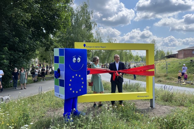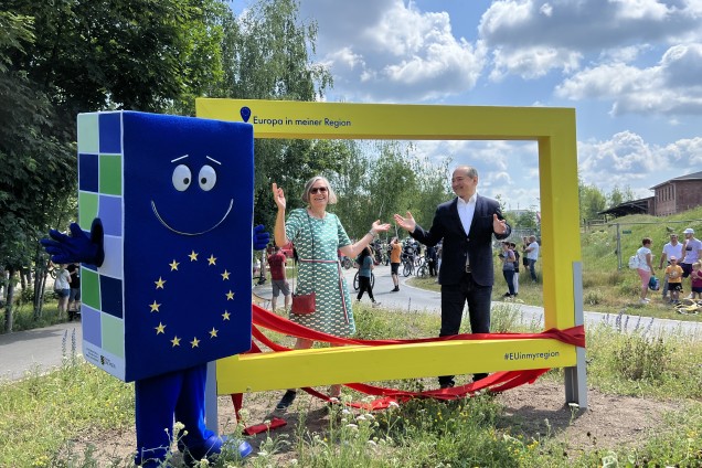 Am letzten Sonntag gab es in Görlitz rund um den Brautwiesenbogen ein abwechslungsreiches Angebot - mit BMX-Workshop, Graffiti-Workshop und einer Stadtrallye zu EU-geförderten Stationen. Der Tag stand unter dem Motto „Hier kommen wir zusammen“ und fand als eine von vielen Aktionen zu „Europa in meiner Region“ der Europäischen Kommission statt. Dorte Pardo Lopez von der Europäischen Kommission und der Görlitzer Oberbürgermeister Octavian Ursu eröffneten den bunten Tag in Görlitz mit der Einweihung eines symbolischen Bilderrahmens, der das im Brautwiesenpark Erreichte in den Blick rückt.