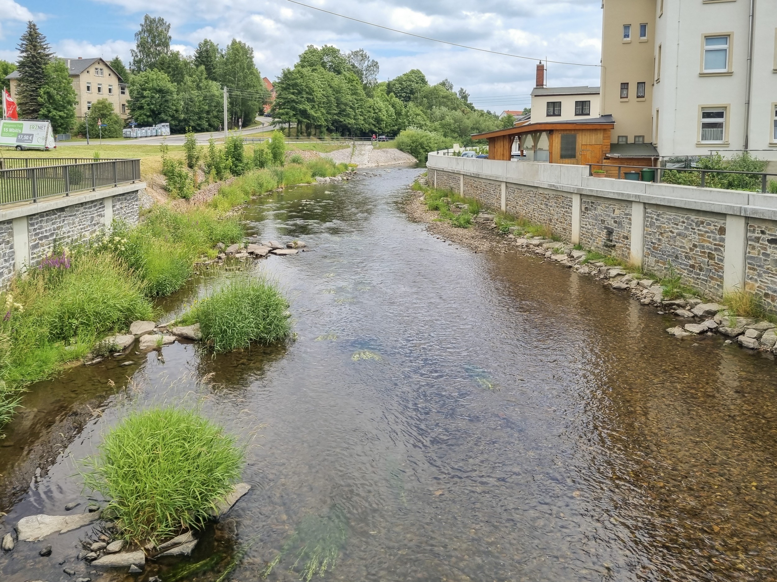 Olbernhau erlebte beim Augusthochwasser 2002 dramatische Stunden. Rund 40 Millionen Euro Schäden entstanden durch die Überflutungen. Um künftig Schutz vor solchen extremen Ereignissen zu haben, wurde für den Ort eine durchgängige Hochwasserschutzlinie geplant und seit 2014 in mehreren Bauabschnitten realisiert. Die Baumaßnahmen verlangten den Olbernhauer Bürgern einiges ab. Nach fast zehn Jahren Bauzeit ist die neue Hochwasserschutzlinie entlang der Flöha seit Mai 2024 fertiggestellt. Das Vorhaben wurde aus Mitteln des Europäischen Fonds für regionale Entwicklung (EFRE) und des Freistaates Sachsen finanziert.