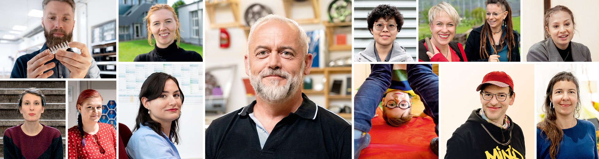 13 verschiedene Fotos von Menschen am Arbeitsplatz